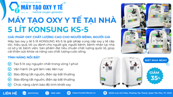 👉 Thương hiệu khuyến nghị Quý khách hàng trang bị máy tạo oxy KONSUNG KS-5 như một giải pháp y tế thiết yếu để bảo vệ sức khỏe lâu dài cho gia đình và người thân.