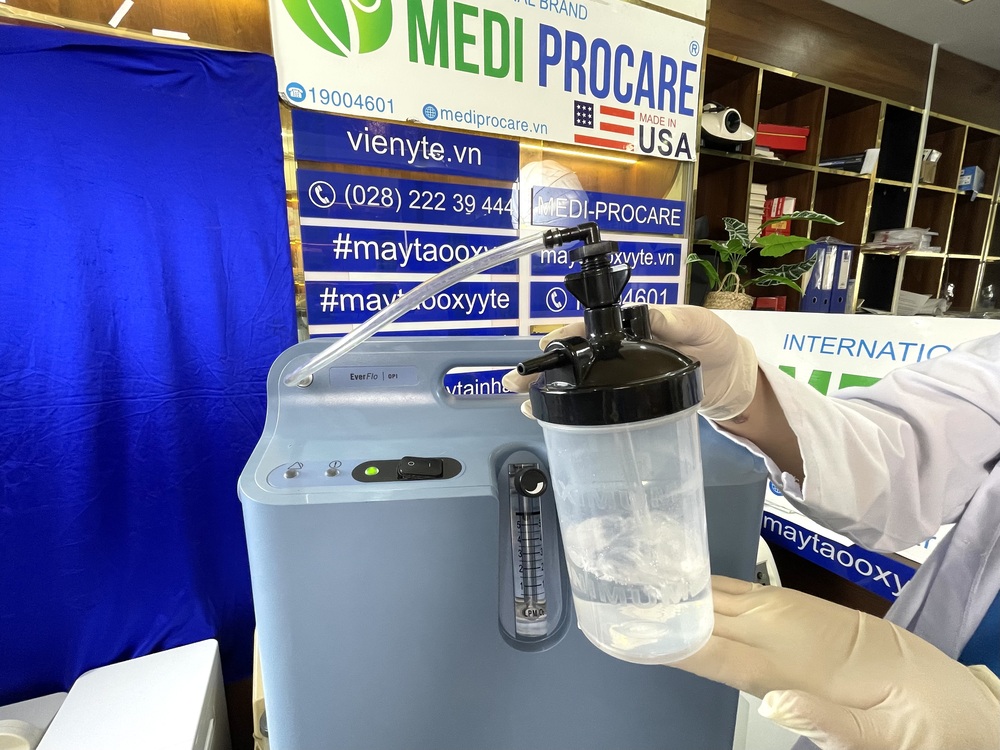 Gắn ống thông vào chai làm ẩm theo thông số của nhà sản xuất.